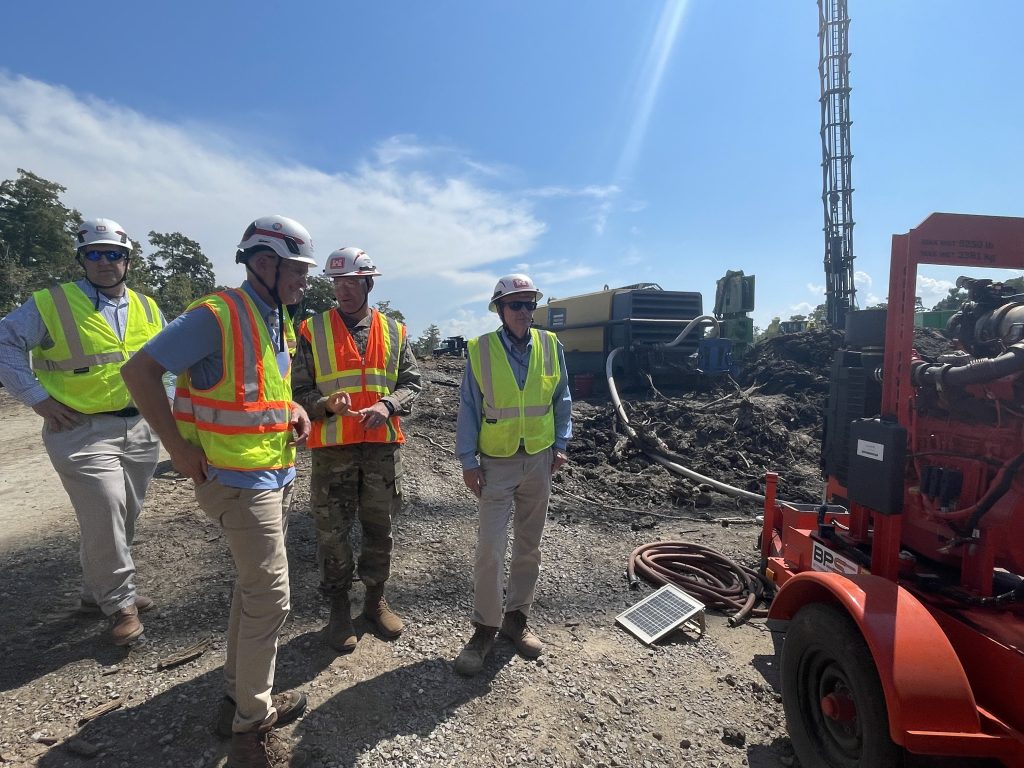 Cassidy specifically looked at the construction taking place that was authorized by Contract 102, which is 48% complete and scheduled to be finished by Fall of 2027. That includes construction of the Montz Canal Drainage Structure, and the I-10 East Floodwall. He was led on the tour by Colonel Scotty Autin, the commander and district engineer for the Corps of Engineers’ New Orleans District.